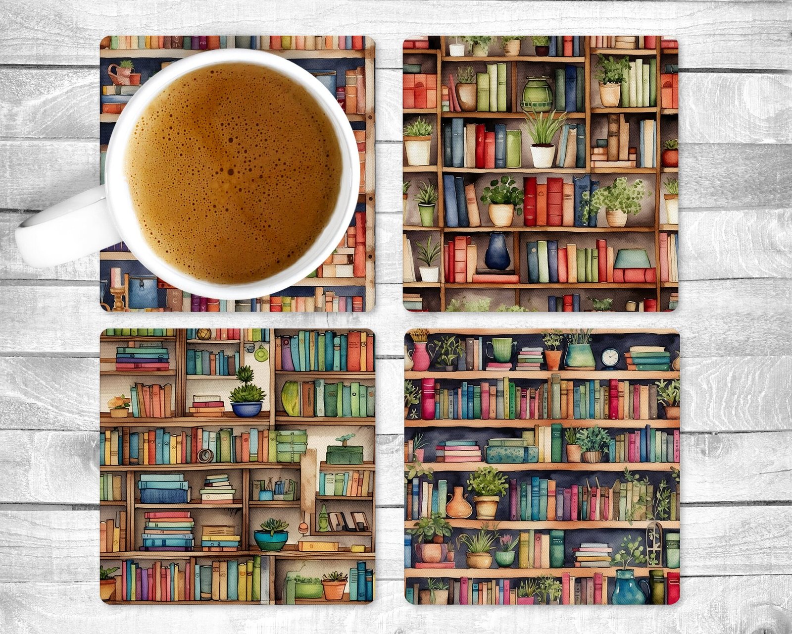 Books Galore, Absorbent Drink Coasters, Individual or set of 4, Non-Slip Base, Neoprene, Gift, Everyday Use