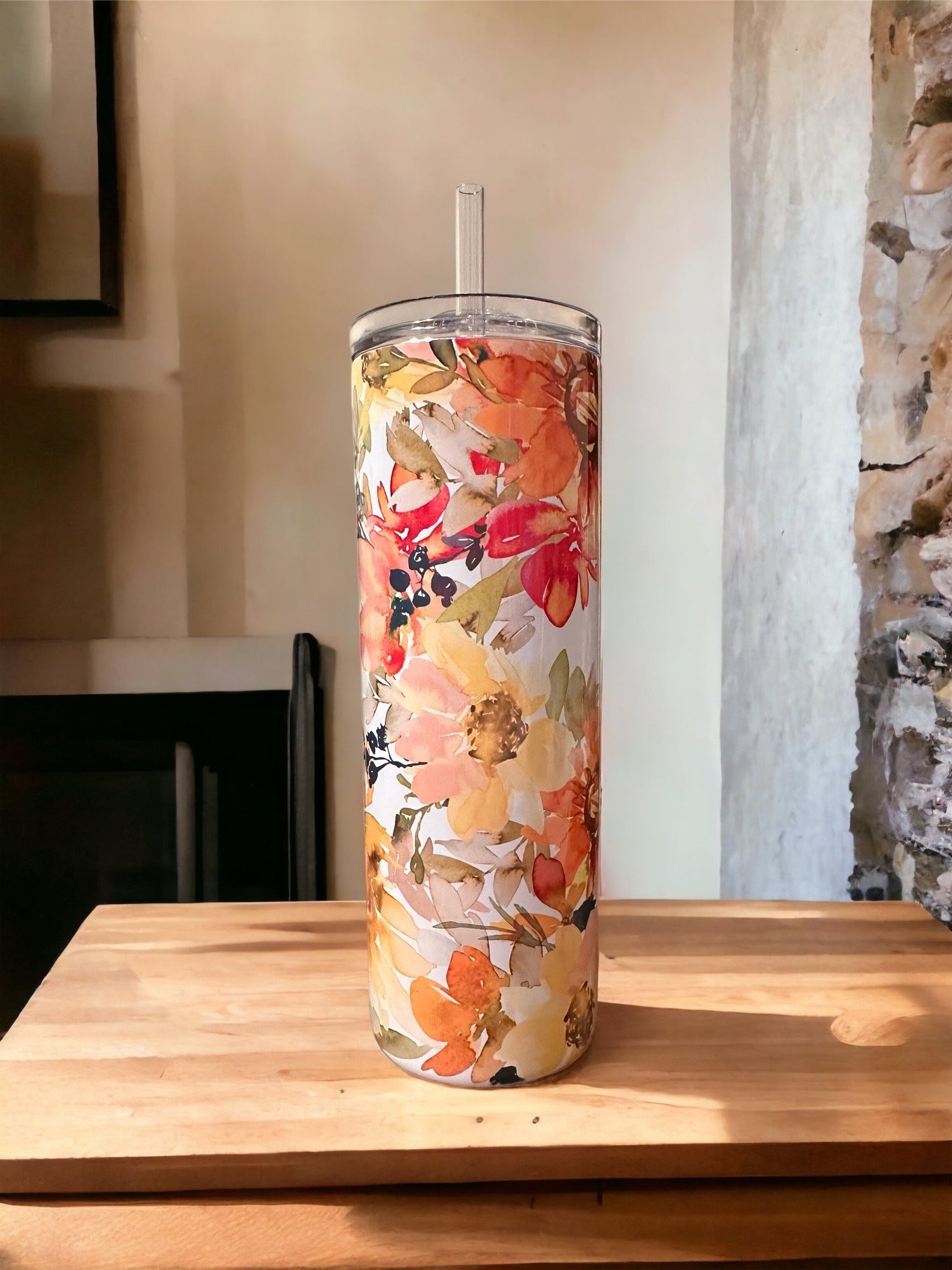 Flowers 10, 20oz Skinny Straight Tumbler, Stainless Steel, Travel Cup, Gift, Everyday Use