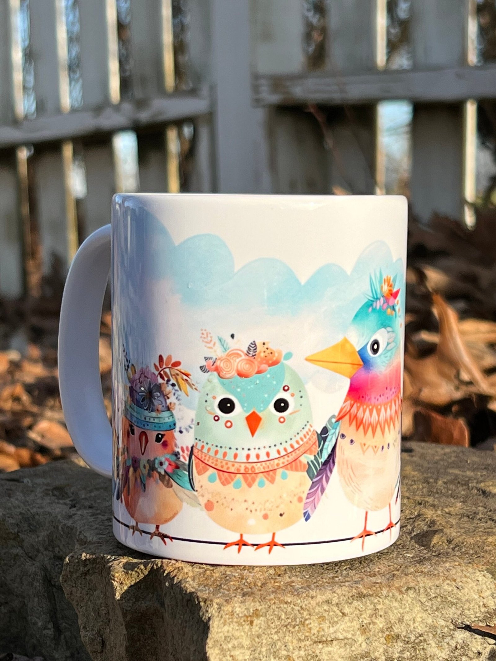 Funnny Birds, 11oz Mug, Ceramic, Permanent Design, Birds, Gift, Everyday Use