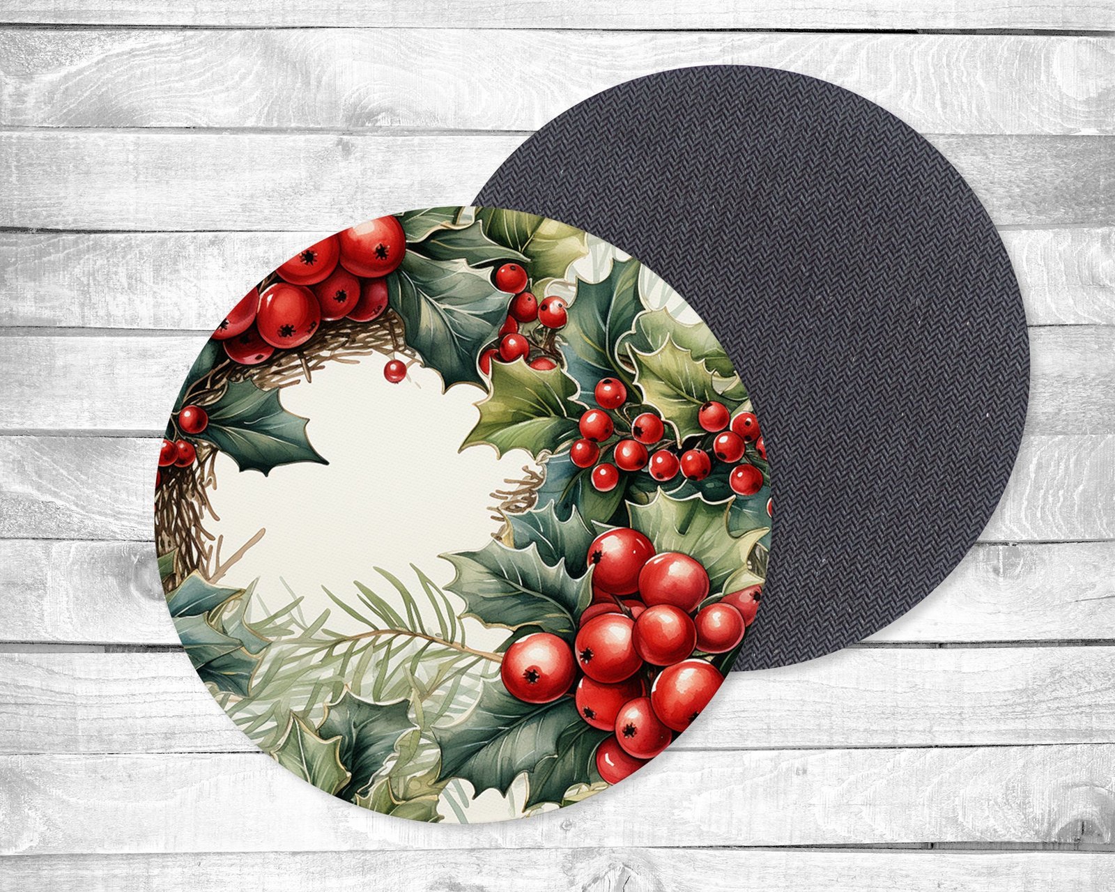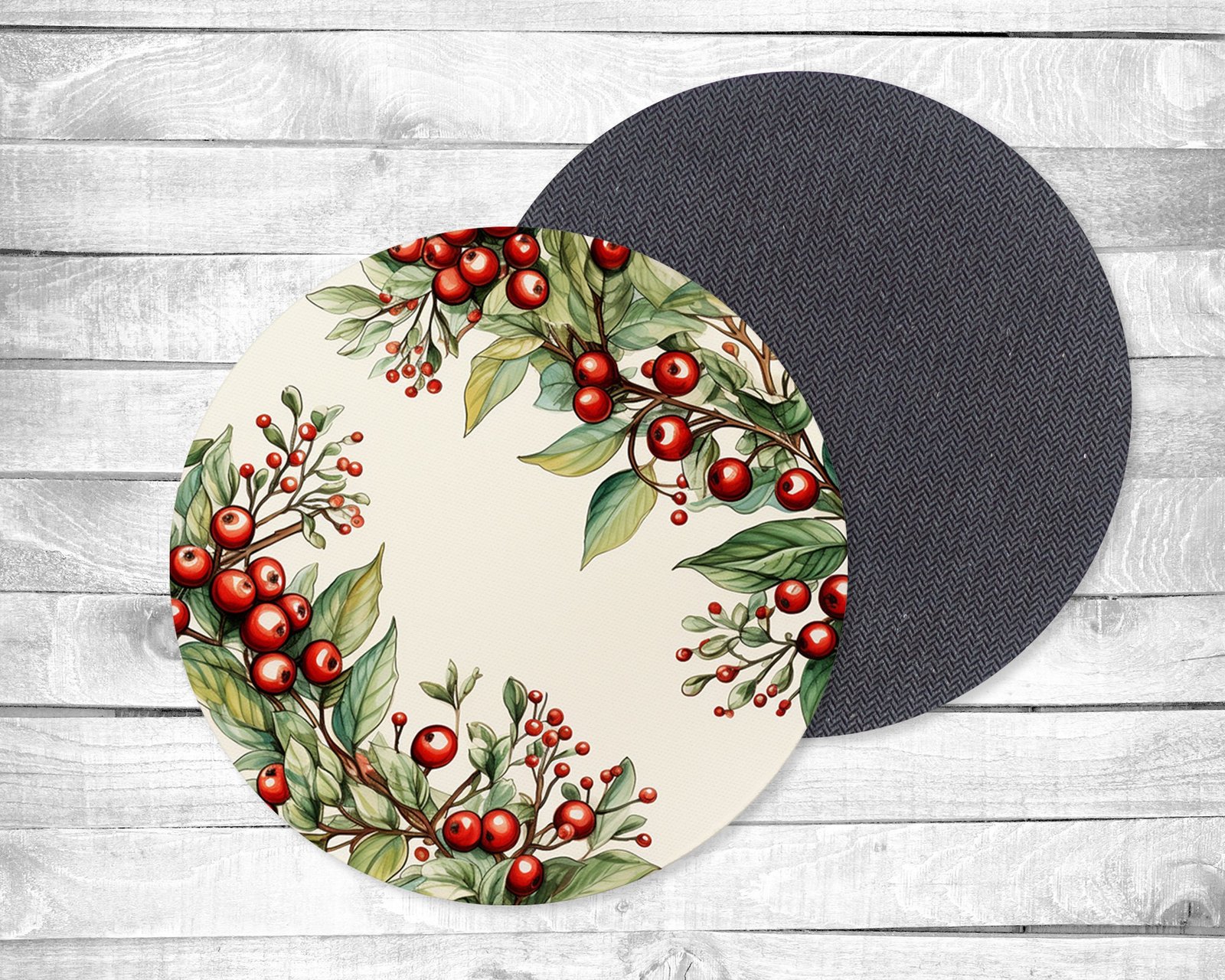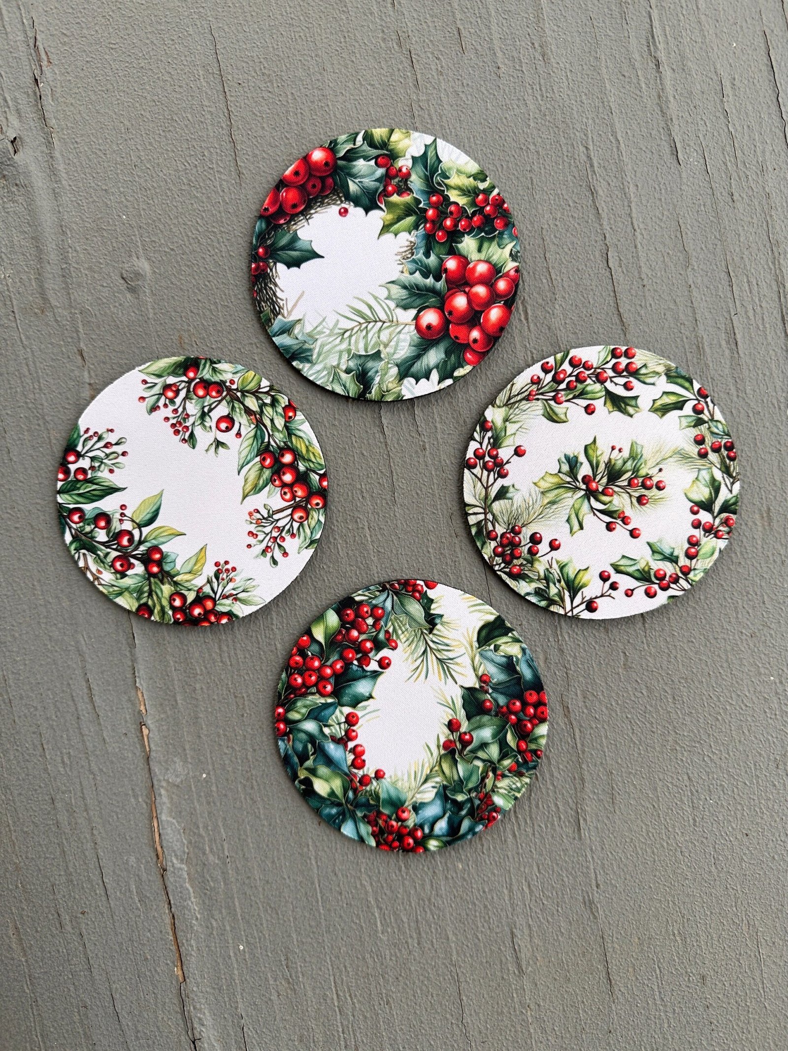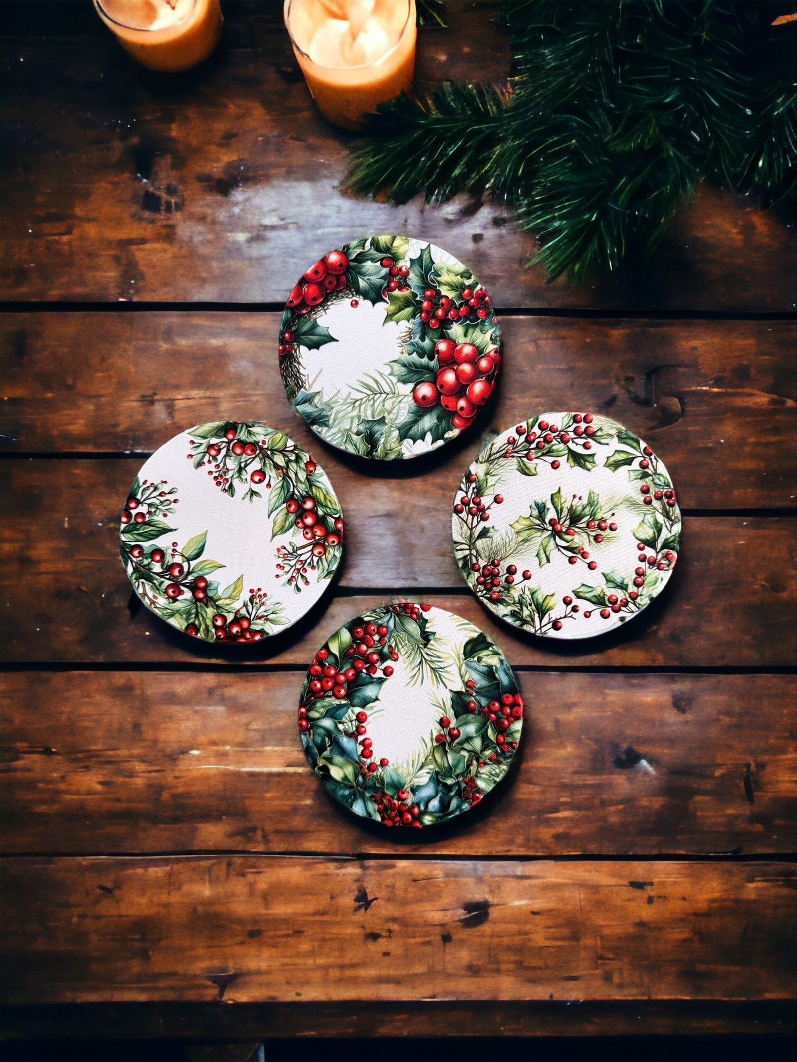 Holly, Absorbent Drink Coasters, Individual or set, Non-Slip Base, Neoprene, Gift, Everyday Use