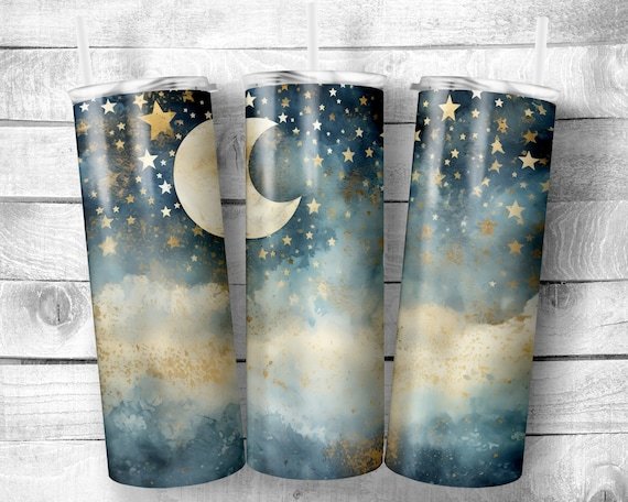 Moon and Stars, 20oz Skinny Straight Tumbler, Stainless Steel, Travel Cup, Gift, Everyday Use