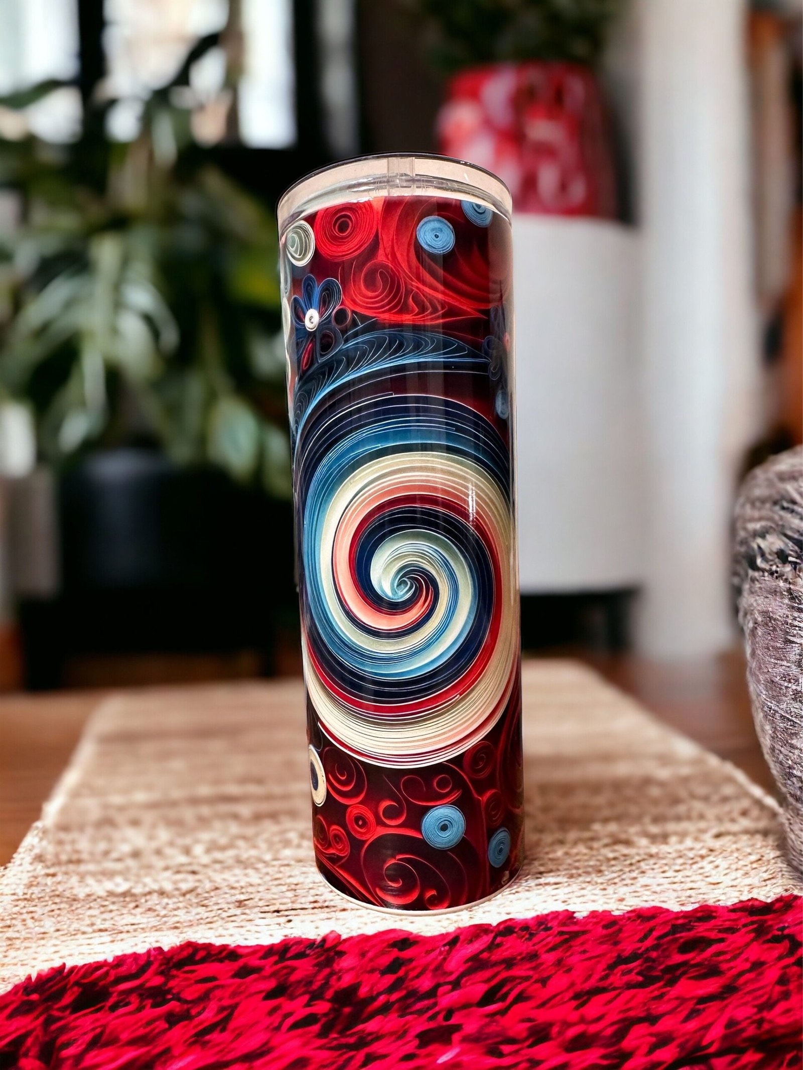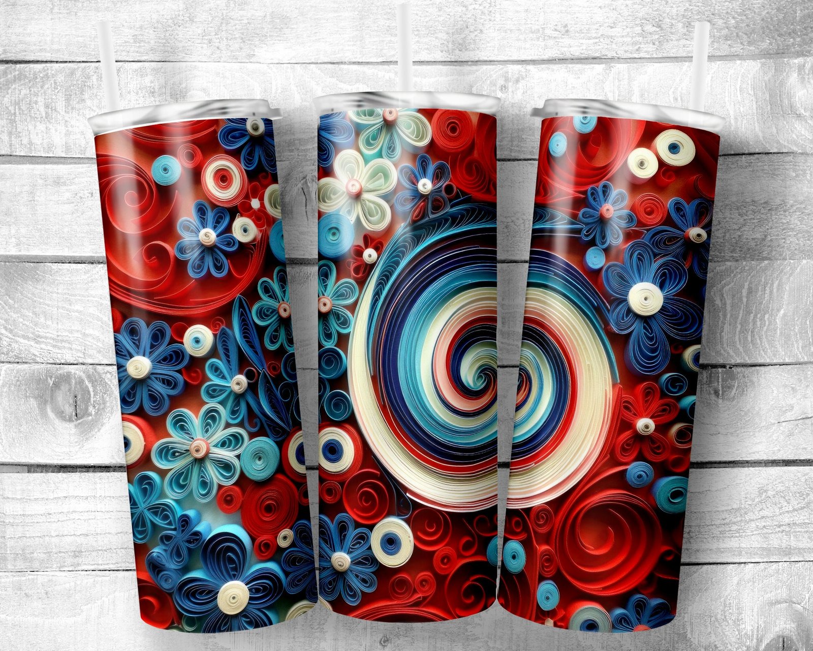 Quilling 3D, 20oz Skinny Straight Tumbler, Stainless Steel, Travel Cup, Gift, Independence Day, Holiday, Everyday Use