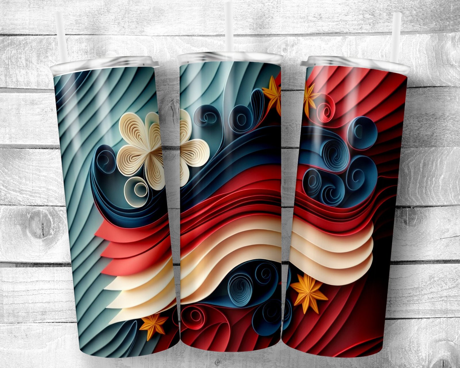 Quilling 3D, 20oz Skinny Straight Tumbler, Stainless Steel, Travel Cup, Gift, Independence Day, Holiday, Everyday Use