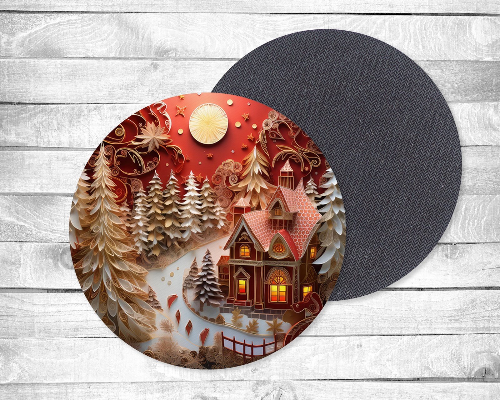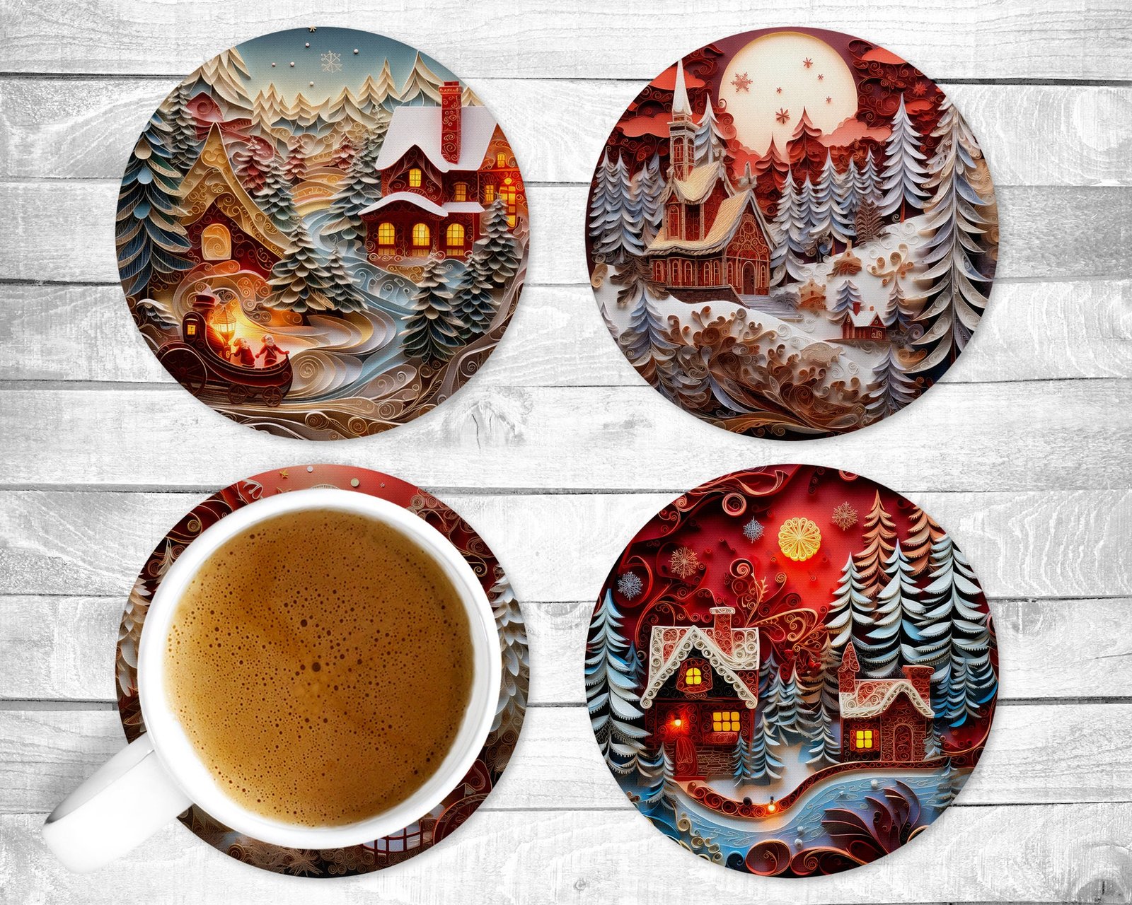 Red Winter, Absorbent Drink Coasters, Individual or set of 4, Holiday Themed, Non-Slip Base, Neoprene, Gift, Everyday Use