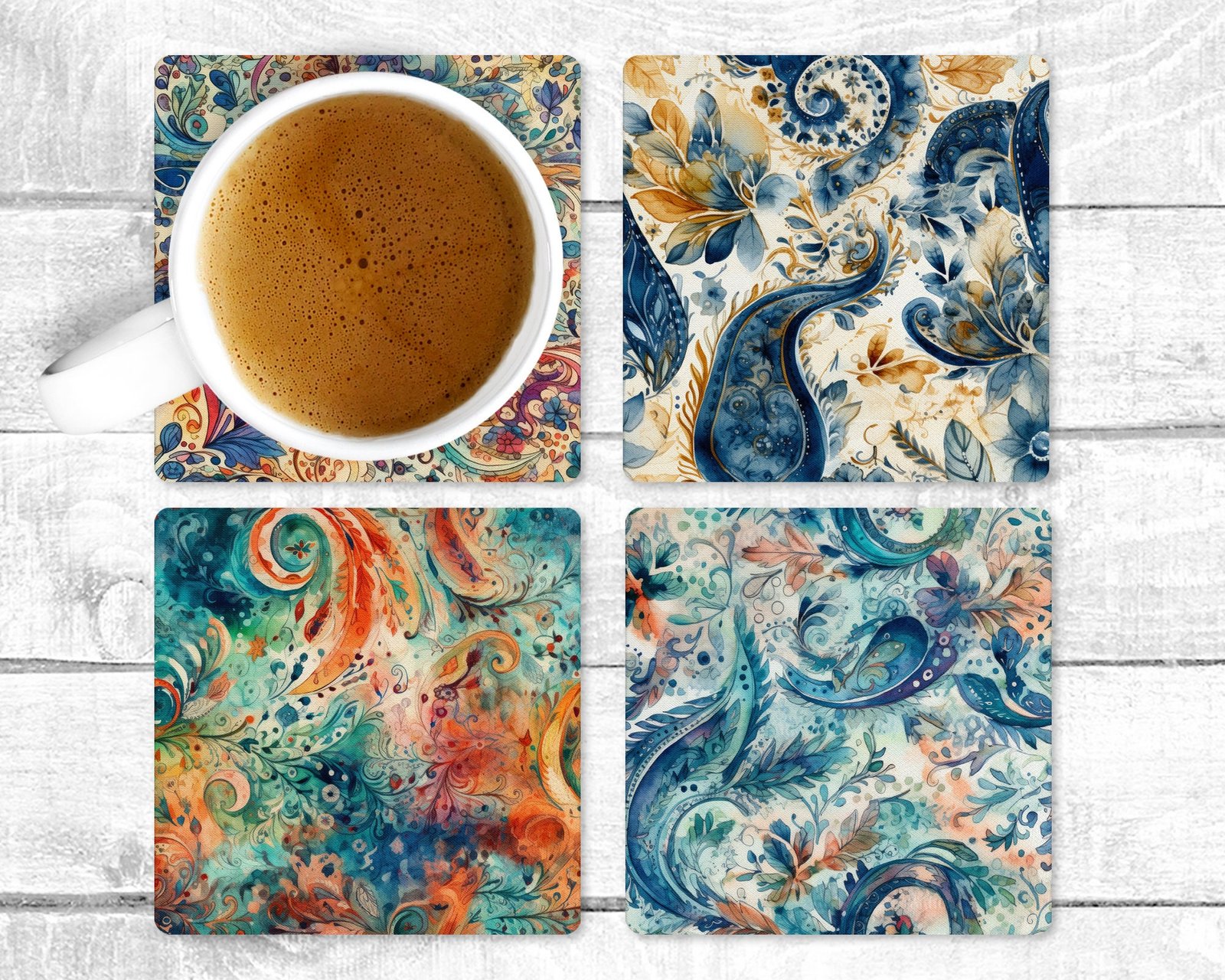 Be the first to review “Soft Paisley, Absorbent Drink Coasters, Individual or set of 4, Non-Slip Base, Neoprene, Gift, Everyday Use”