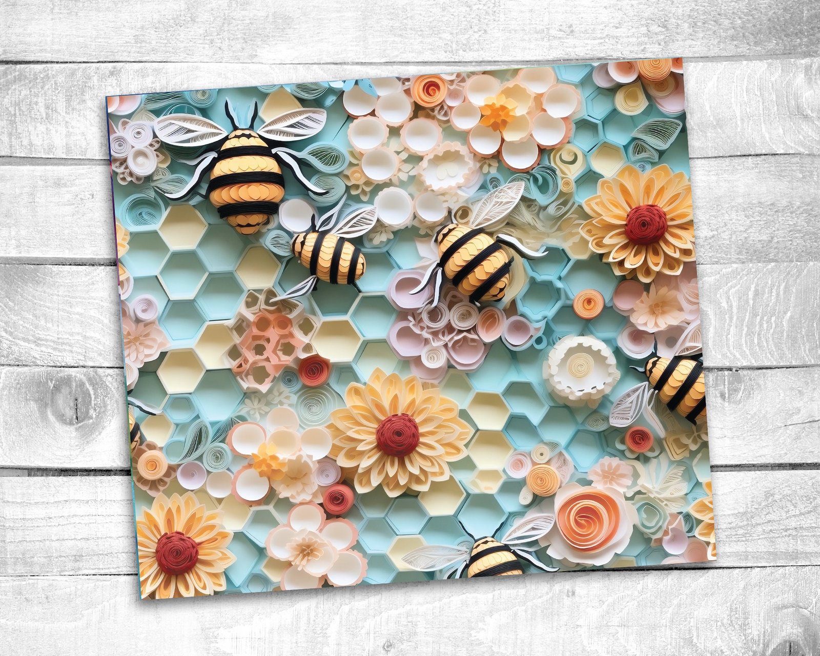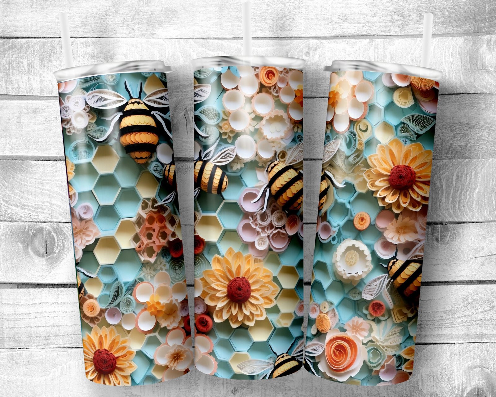 Summer Bees, 20oz Skinny Straight Tumbler, 3D Design, Stainless Steel, Travel Cup, Gift – Everyday Use