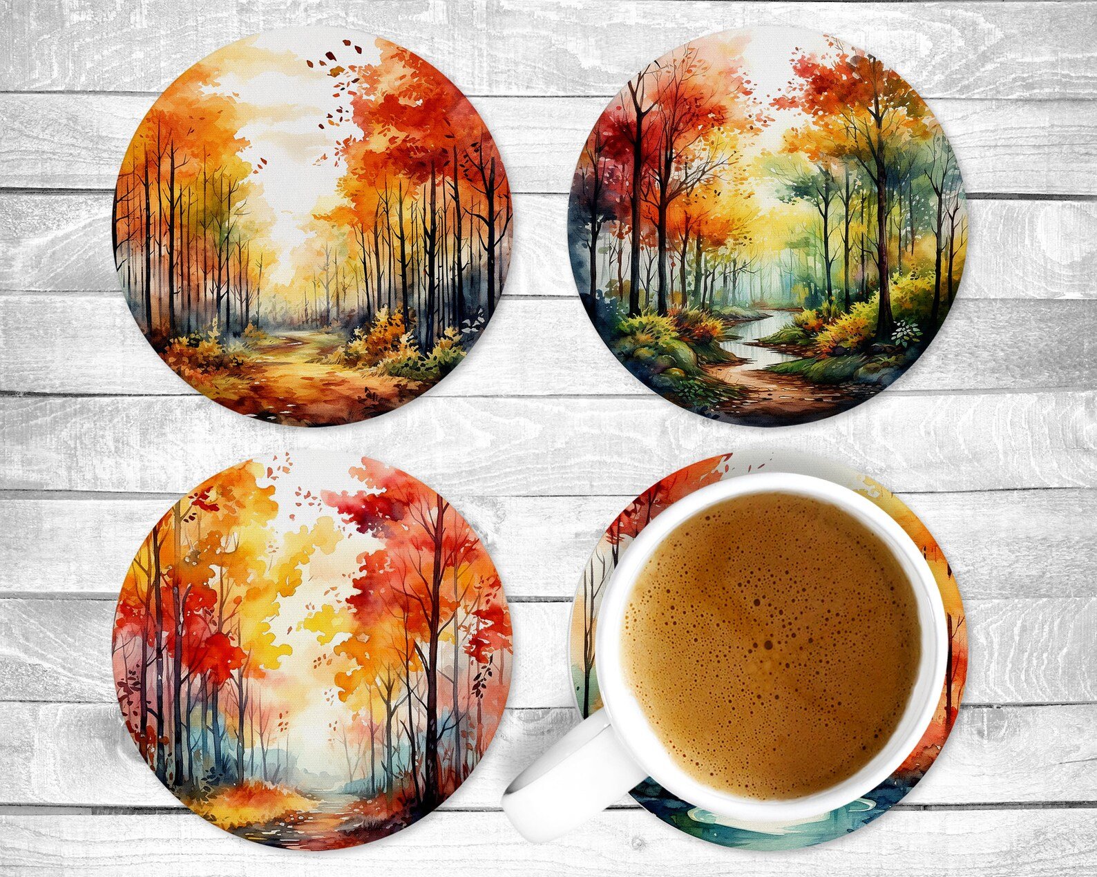 Watercolor Fall, Absorbent Drink Coasters, Individual or set of 4, Non-Slip Base, Neoprene, Gift, Everyday Use