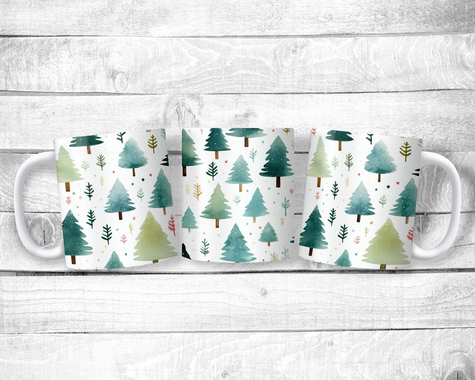 Watercolor Pine Trees, 11oz Mug, Holiday Themed, Christmas, Ceramic, Gift, Everyday Use